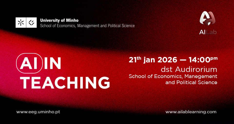 On January 21, 2026, at 2:00 p.m., the School of Economics, Management, and Political Science (EEG) will host the first public session of AILab, an academic project dedicated to the application of Artificial Intelligence in the context of Higher Education, in the EEG Auditorium, Building 8, University of Minho, Gualtar Campus.