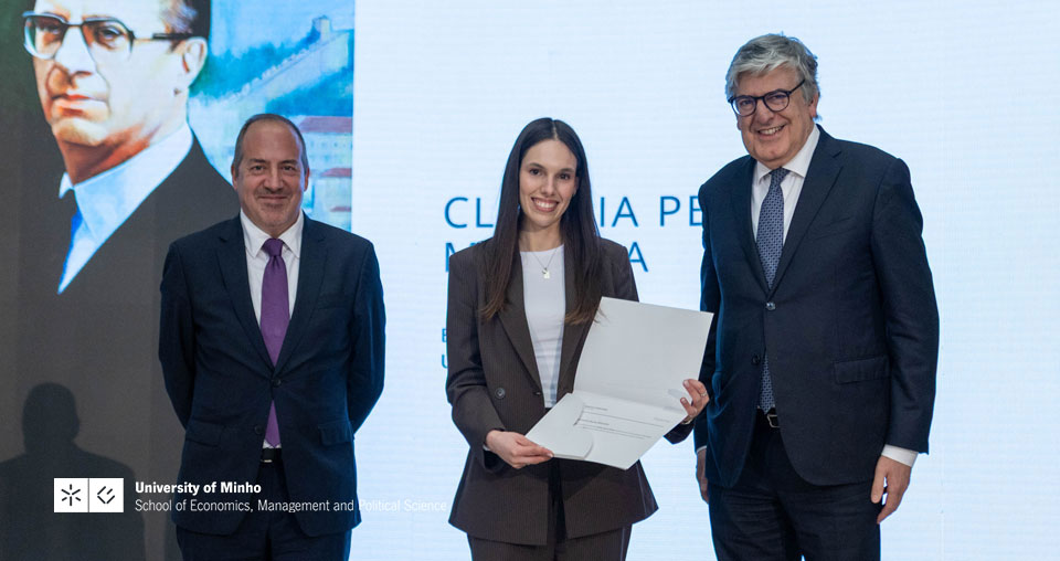For Cláudia Moreira, this distinction represents ‘a huge honour’ and recognition of the ‘effort and commitment’ she has dedicated throughout her degree. The student also emphasises the role of the EEG in this journey, highlighting the ‘rigour and excellence’ of the School, as well as the presence of Professor Luís Aguiar-Conraria at the ceremony, which she considers a clear sign of the EEG's support for its students' journey.