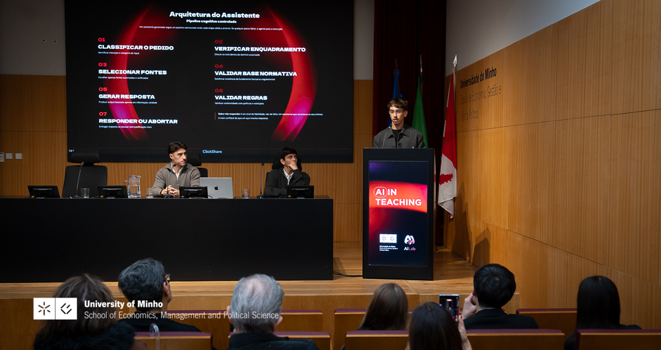 The School of Economics, Management and Political Science at the University of Minho hosted the first public session of AILab, an academic project developed by students from the Bachelor's Degree in Management, with the aim of training colleagues in the responsible and effective use of Artificial Intelligence in the context of higher education.