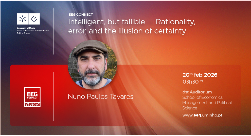 On February 20, 2026, at 3:30 p.m., the School of Economics, Management, and Political Science at the University of Minho will hold a session entitled “When intelligence is not enough: critical thinking as an epistemological requirement” in the dst Auditorium, dedicated to reflecting on the role of critical thinking in evaluating information, arguments, and decisions.