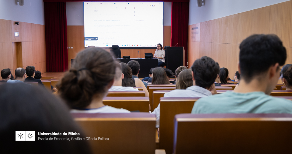 A Escola de Economia, Gestão e Ciência Política da Universidade do Minho acolheu duas sessões “EEGConnect: Apresentação das Bibliotecas UMinho”, realizadas nos dias 7 e 14 de outubro, no Auditório dst, com o objetivo de aproximar os estudantes — em especial os do 1.º ano — dos recursos e serviços disponíveis nas Bibliotecas da Universidade do Minho.