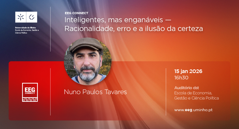A Escola de Economia, Gestão e Ciência Política da Universidade do Minho promove, no dia 15 de janeiro de 2026, pelas 16h30, no Auditório dst a sessão “Quando a inteligência não basta: pensamento crítico como exigência epistemológica”, dedicada à reflexão sobre o papel do pensamento crítico na avaliação de informação, argumentos e decisões.